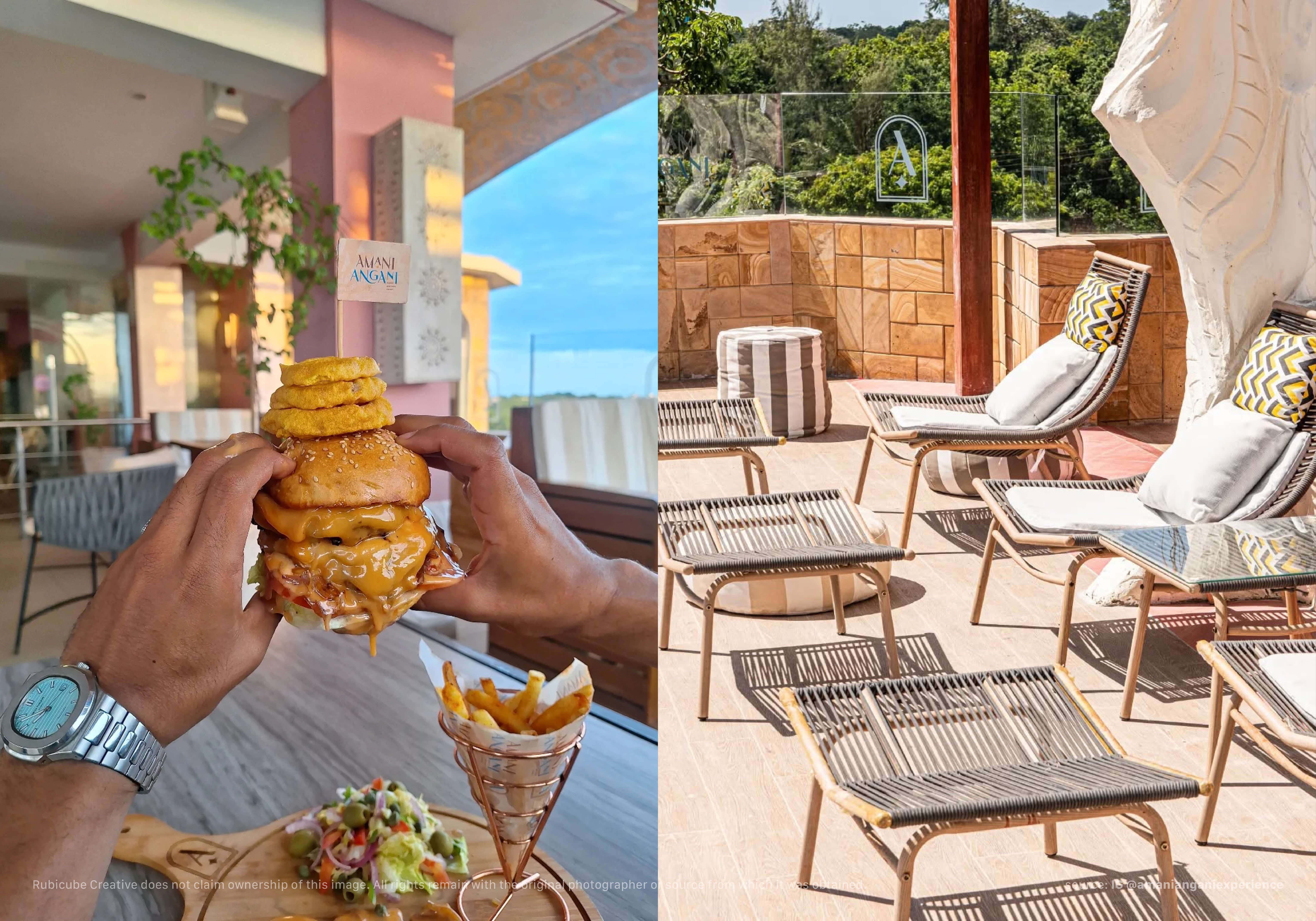 Amani Angani is a boutique rooftop restaurant and bar located along Diani Beach Road, Kenya, envisioned as “Diani’s best-kept secret.” It blends art, culture, and culinary creativity into a single tropical experience where guests are invited to pause, breathe, and get lost in wonder. Designed as a premium lifestyle destination, Amani Angani reflects Kenyan pride through its philosophy “Build Kenya, Buy Kenyan, By Kenyans”—a harmonious mix of coastal elegance, soulful flavors, and modern artistry that celebrates both local roots and global sophistication.