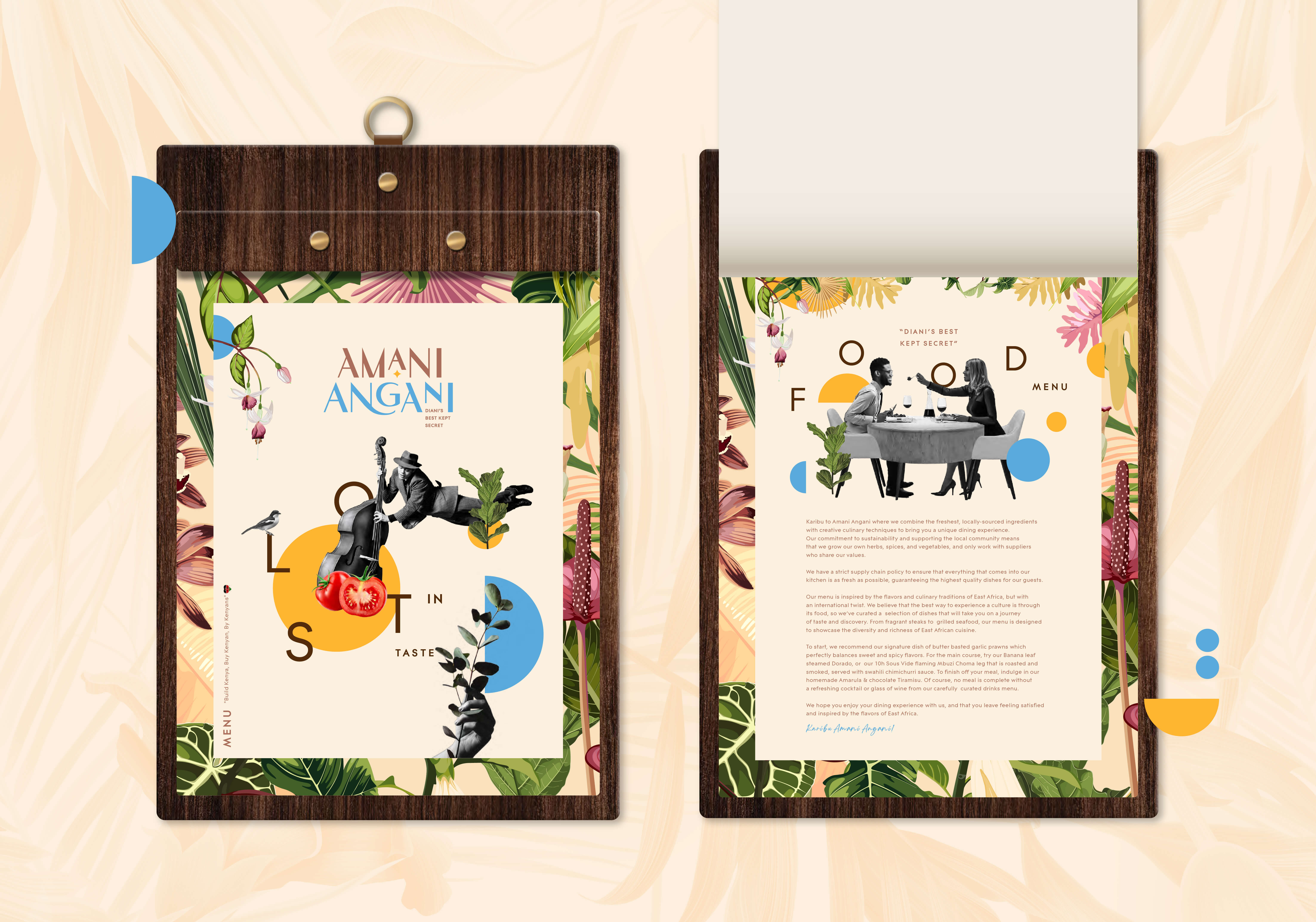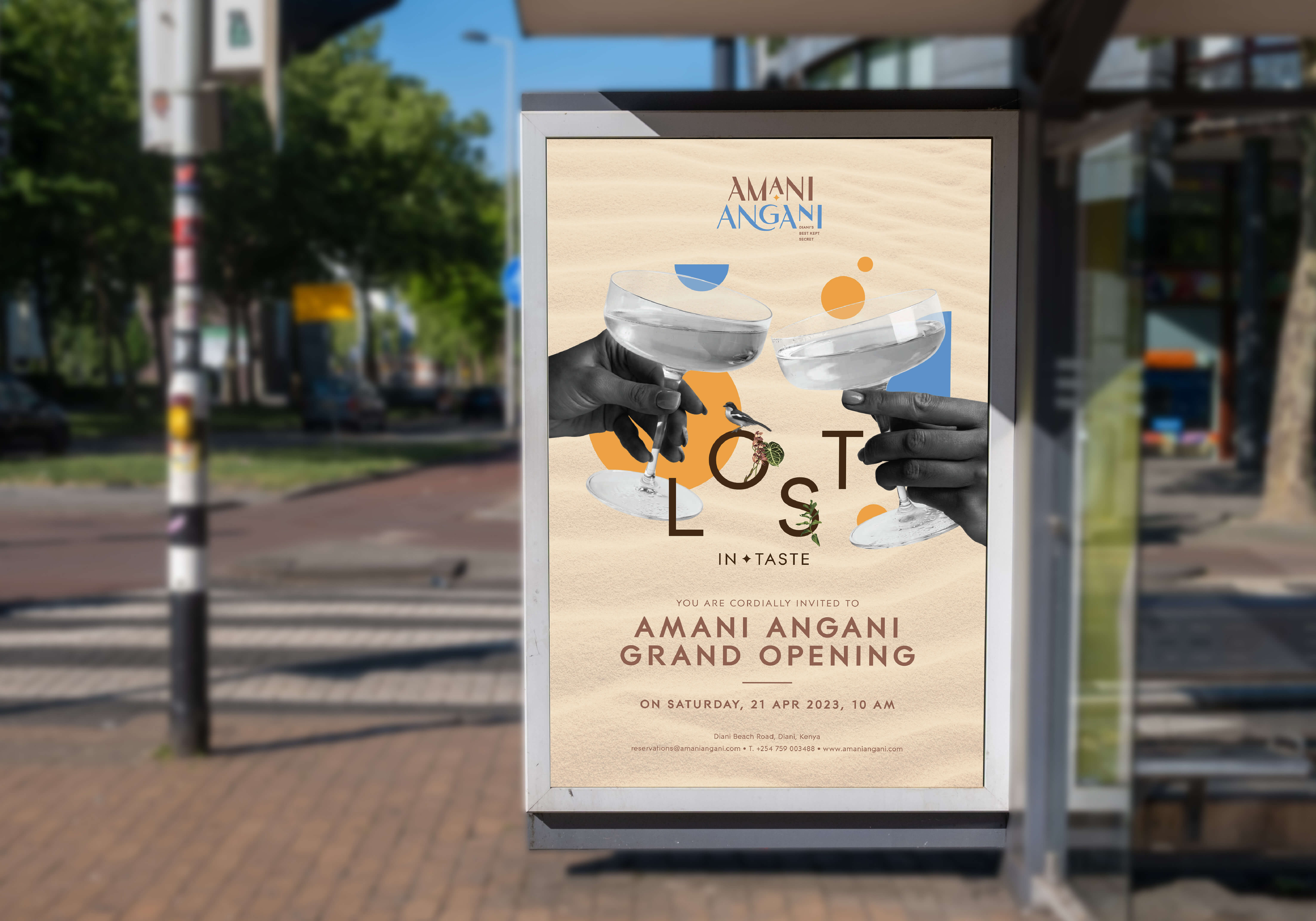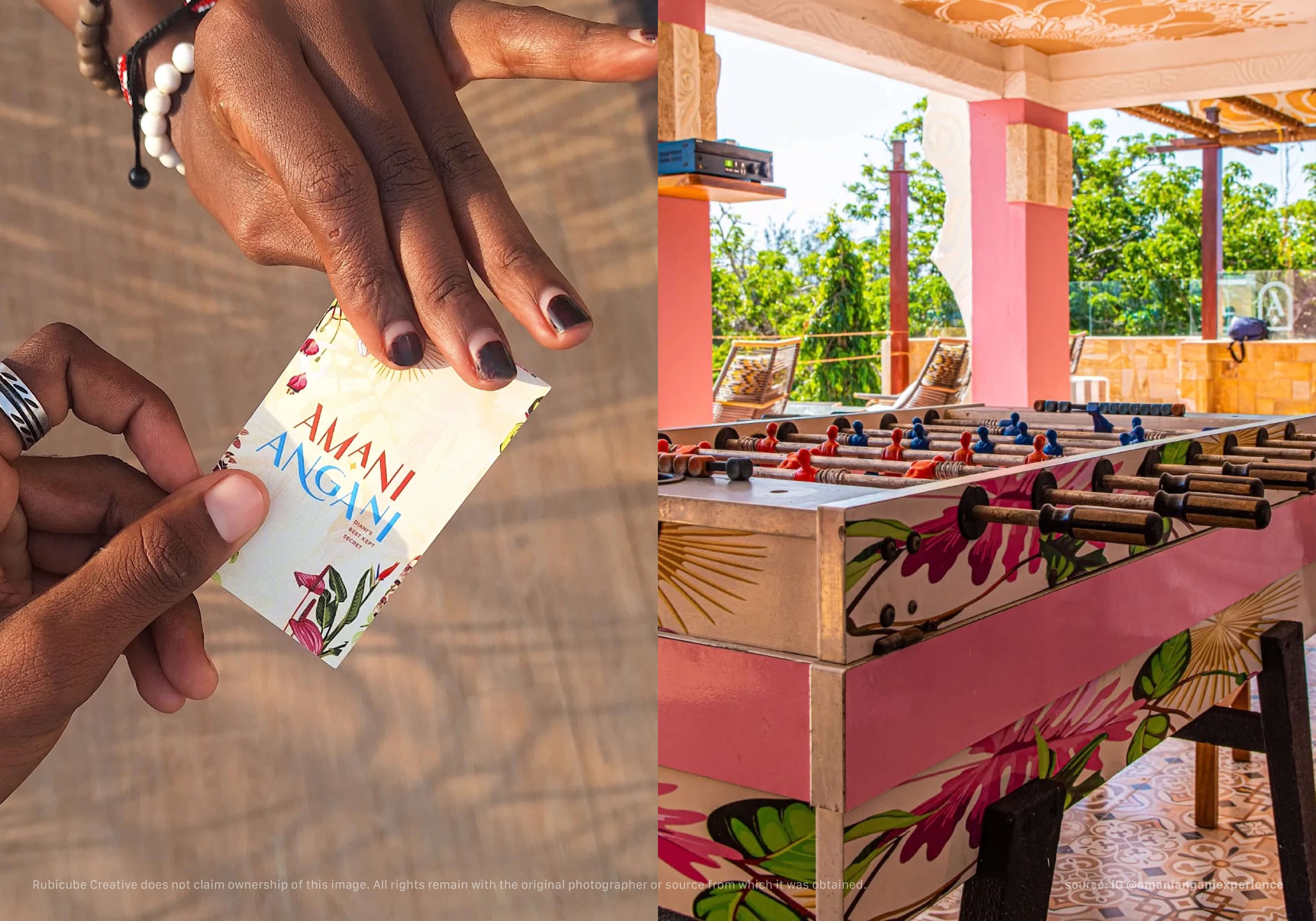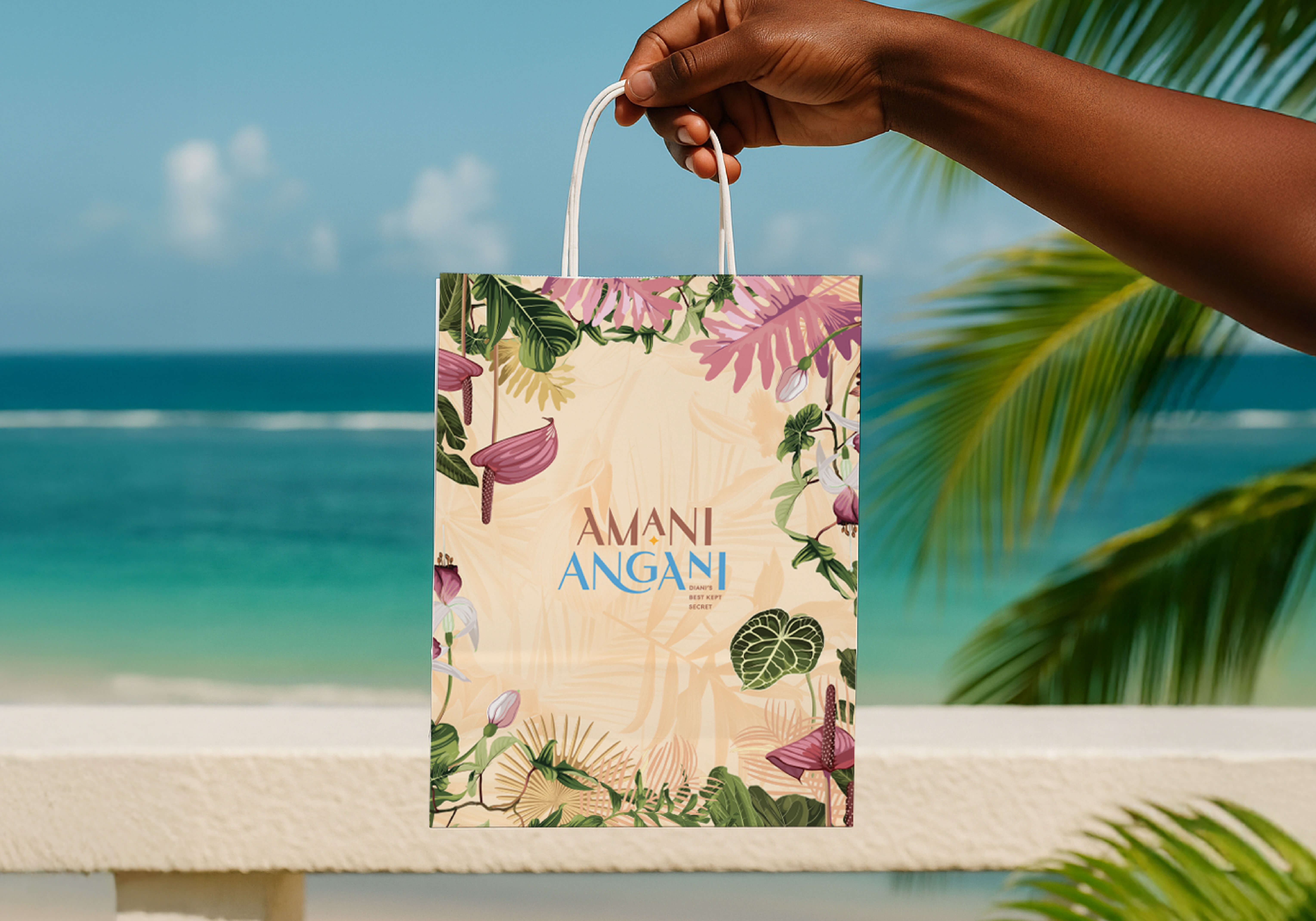 The brief for Amani Angani began with a challenge to translate the essence of “Diani’s best-kept secret” into a unified brand that blends Kenyan culture, tropical artistry, and contemporary sophistication. The key challenge was creating a distinct identity that felt both local and global—elevating Diani’s charm while standing out as a premium rooftop experience.