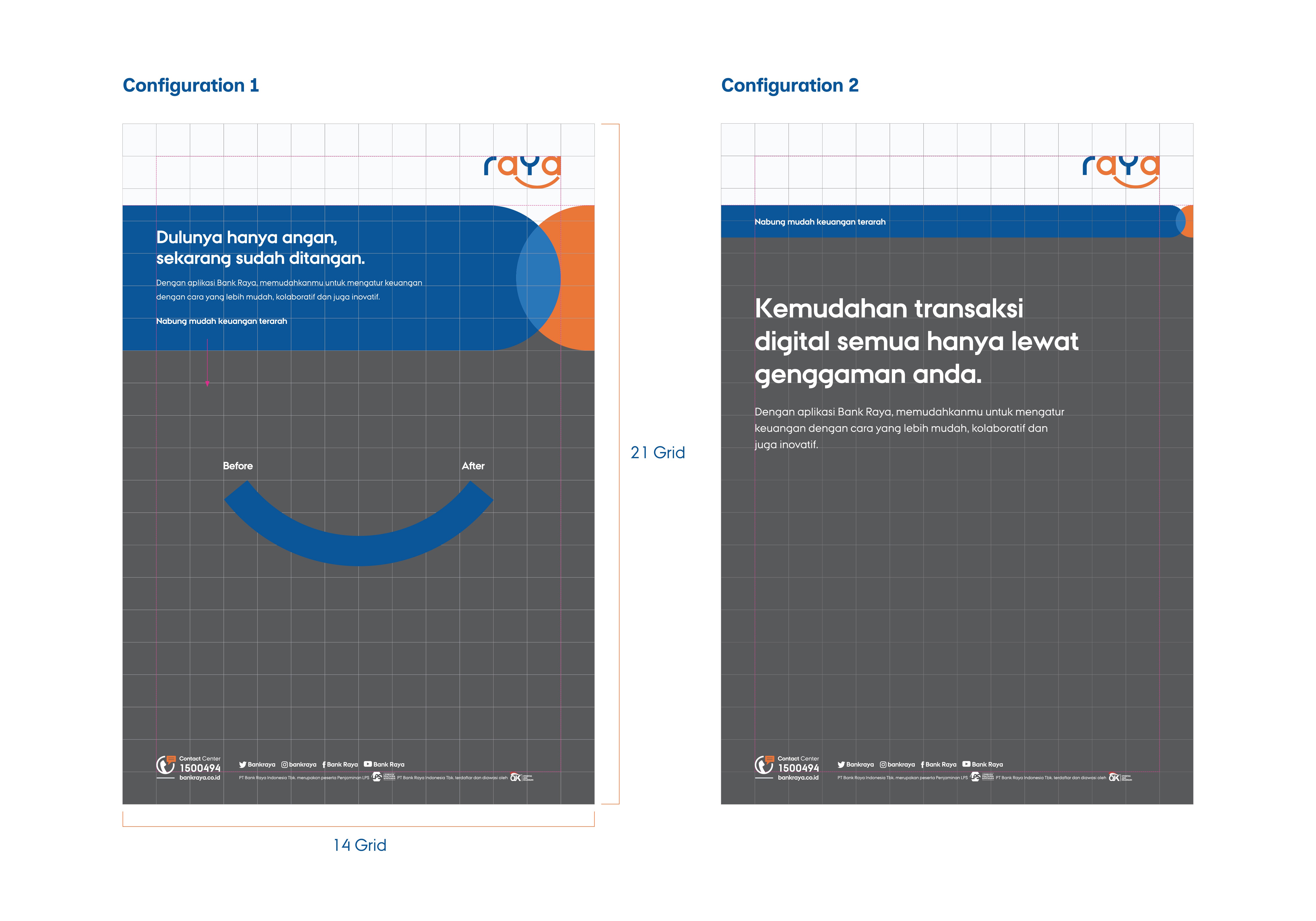 For Bank Raya, our work focused on constructing a disciplined and scalable brandmark system. We established proportional relationships between each component of the logo using a structured measurement grid (X system), ensuring visual balance and consistency across all applications. From brandmark structure to clear space requirements and minimum sizing standards for print and digital, every specification was carefully defined to preserve clarity and legibility.
