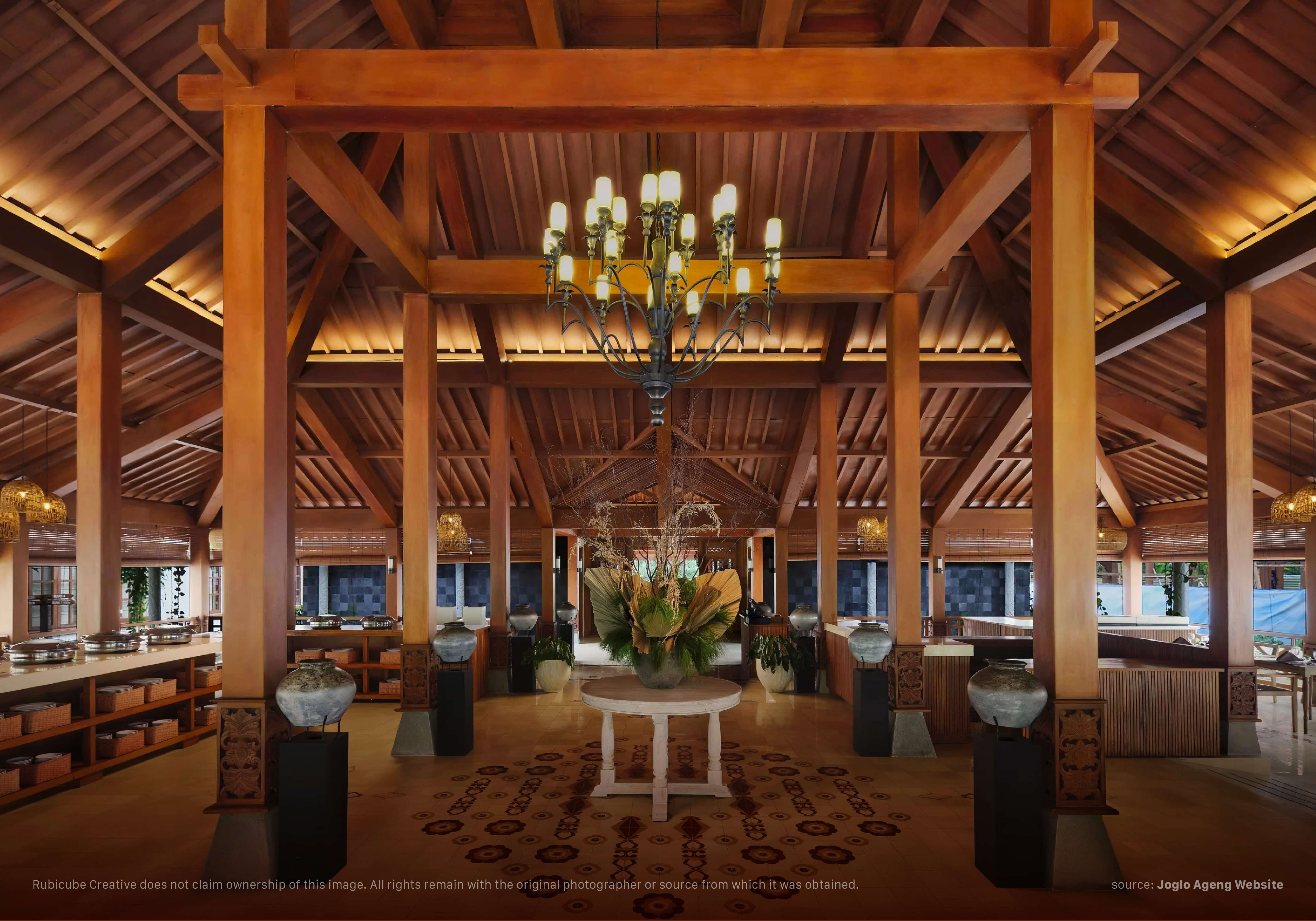 Joglo Ageng was developed as a five-star cultural hotel rooted in the dignity and philosophy of Javanese heritage. Positioned beyond accommodation, the hotel offers an immersive hospitality experience where architecture, service rituals, and culinary expression come together to embody refinement, calm, and cultural depth. Through thoughtful storytelling and a composed visual language, Joglo Ageng invites guests to experience Javanese values—harmony, respect, and togetherness—translated into contemporary luxury without diluting their meaning.