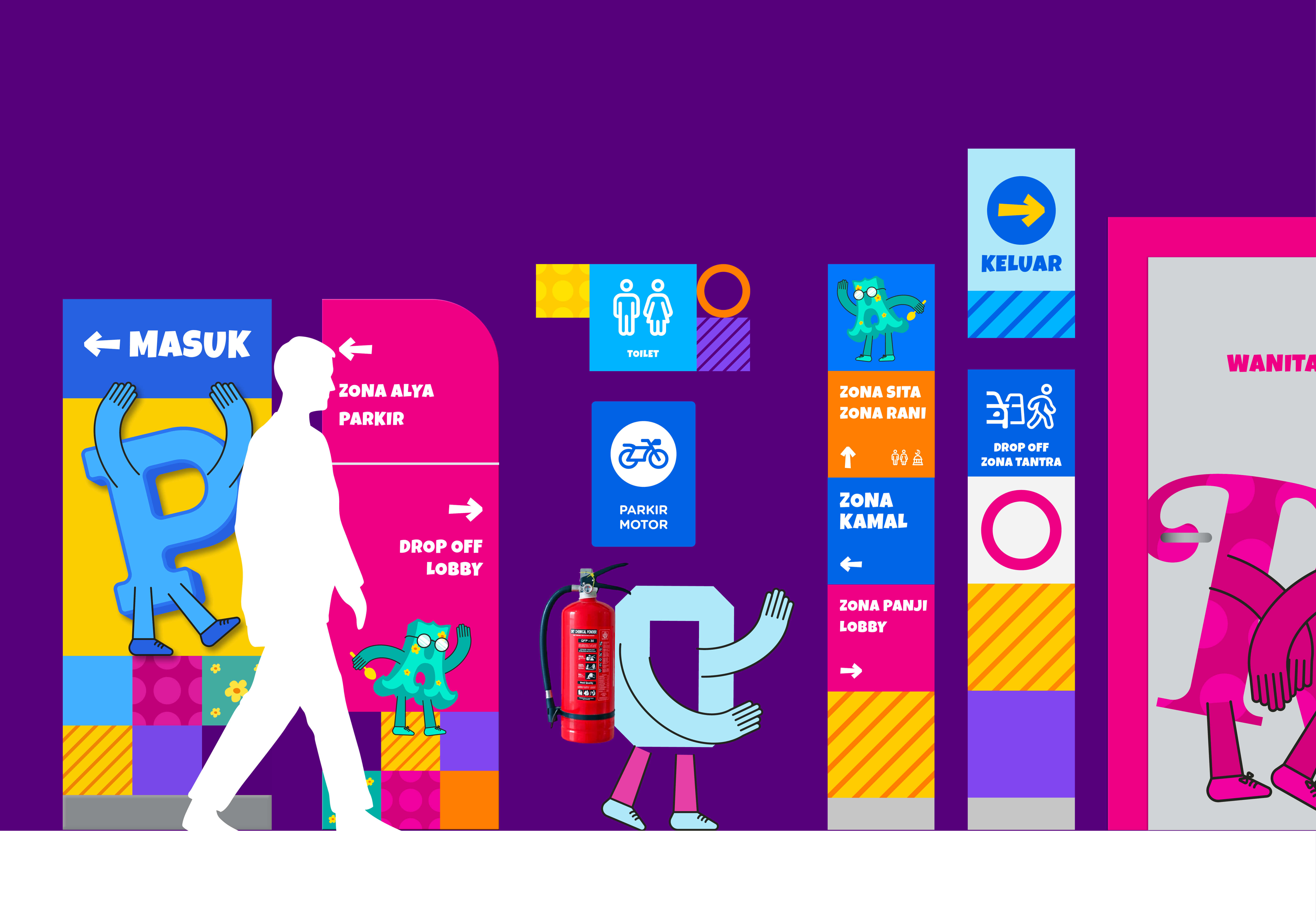 We developed a vibrant character-based identity system supported by bold colors, playful mastergraphics, and scalable layouts. This visual language allows PasarKota to stay energetic yet organized across hundreds of touchpoints — from wayfinding to social media — creating a cohesive, welcoming atmosphere that strengthens PasarKota’s role as a new community destination.